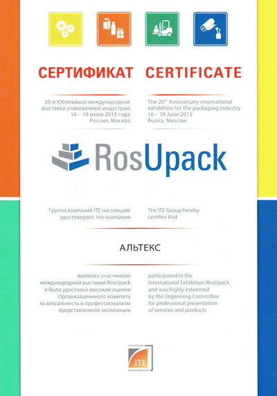 На RosUpack 2015 компания AltexPak представила и показала в работе новейшую автоматическую фасовочно-упаковочную термоформовочную линию полного цикла AltexPak БЛИСТЕР-004 в тару дип-пот, конструктивно объединяющую в себе последовательный технологический процесс: выдув контейнера, розлив (вложение), укупор и оборудованную Вырубным Штампом (матрица-пуансон), что дает несравнимое преимущество нашим клиентам по соотношению цены на оборудование и качества выпускаемой продукции.