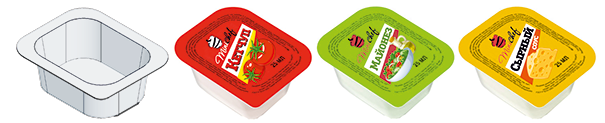 Вид упаковки: Пластиковый стаканчик, Пластиковый контейнер, Дип-пот Упаковываемая продукция: мясо, рыба и морепродукты, бакалея, соусы, молочная продукция, бытовая химия, кондитерские изделия, готовые блюда, фрукты и овощи, медицина Особенность: На автоматической линии выполняется полный цикл технологических операций, начиная с выдува пластикового контейнера или стаканчика из полимерной пленки, заполнения их продуктом с помощью дозатора или укладчика, запайки покровным материалом с напечатанной этикеткой и вырубки герметичных контейнеров и стаканчиков, заполненными продуктом, на отдельные блоки или контейнеры (стаканчики) |